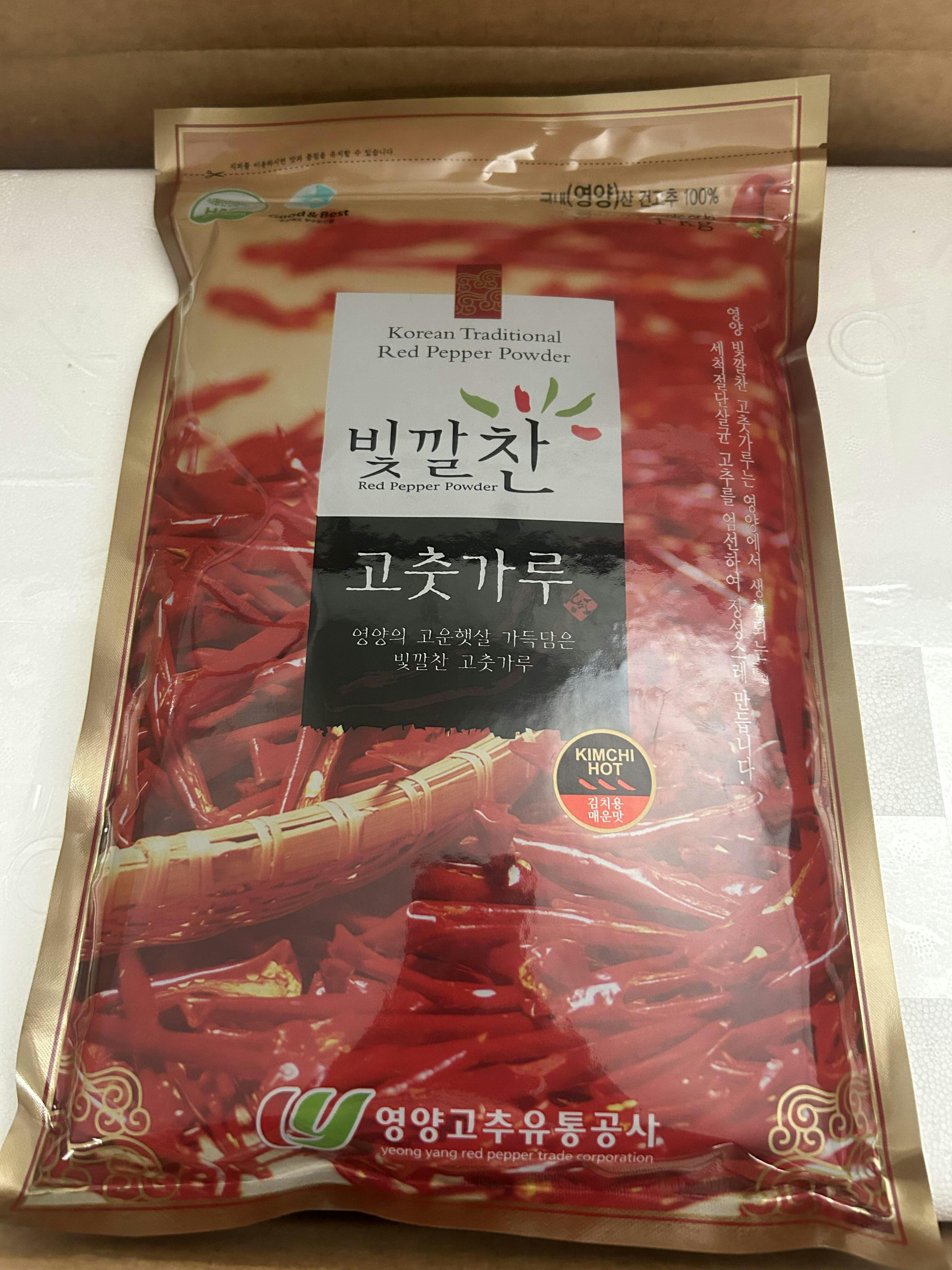 세계 최고의 고춧가루, 경북 영양군의 빛깔찬 고춧가루입니다. 맵기 정도는 보통이며, 김치용으로 입자가 굵어 김치나 겉절이, 국밥요리 등에 사용하기 좋은 제품입니다.
