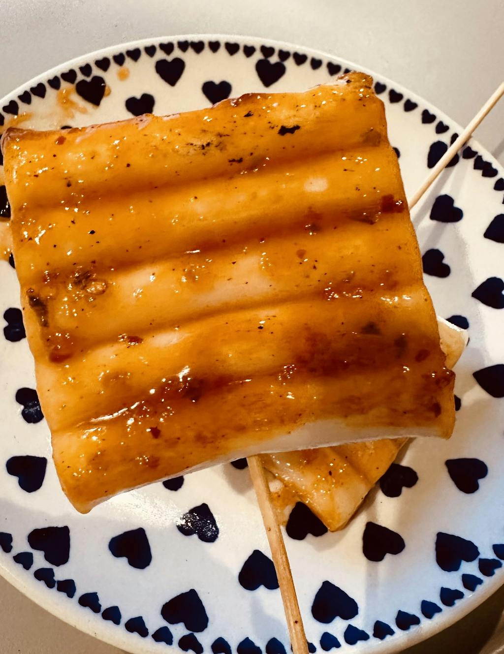 꼬치 형태로 되어 있어 손에 쥐고 간편하게 즐기기 좋습니다.