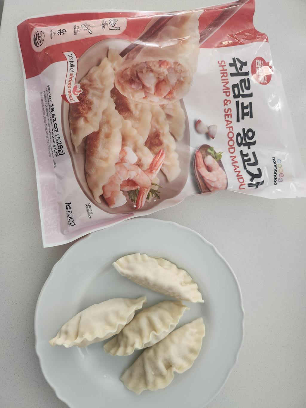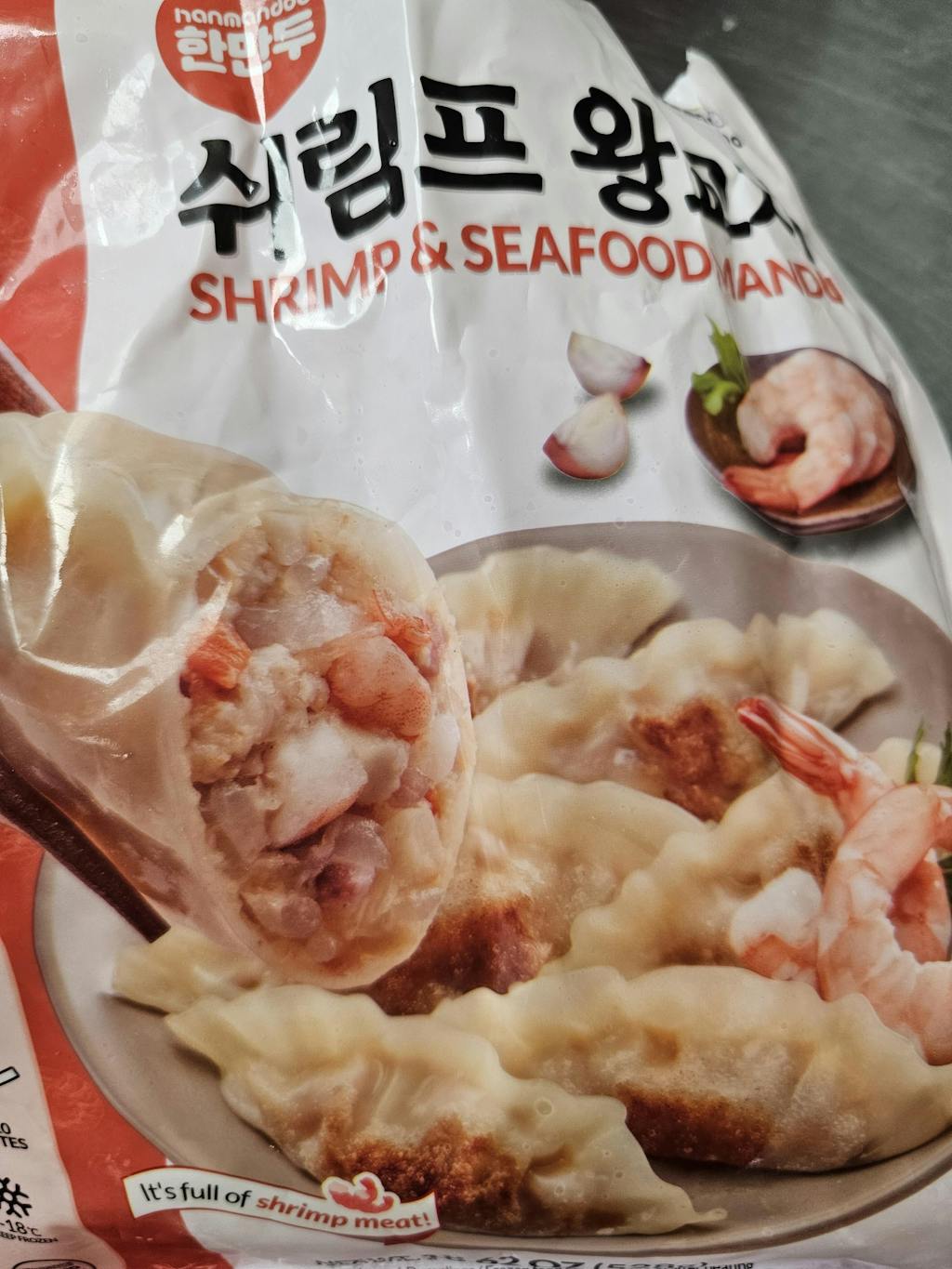 담백하게 속이 꽉찬 쉬림프 왕교자를 소개합니다.