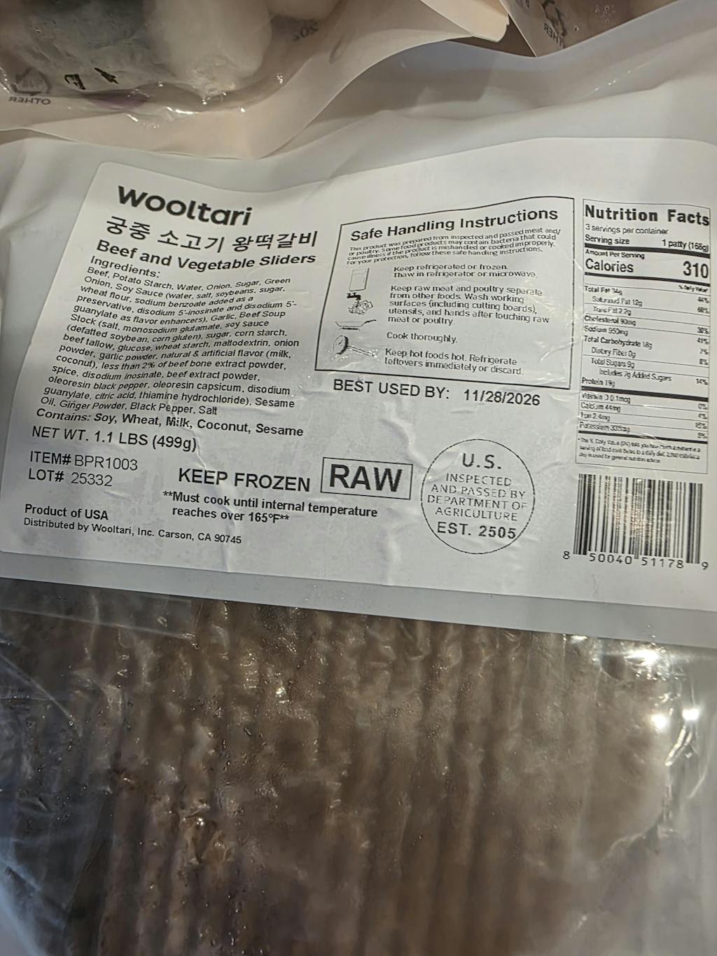 [울타리] 궁중 소고기 왕 떡갈비 1.1 lb