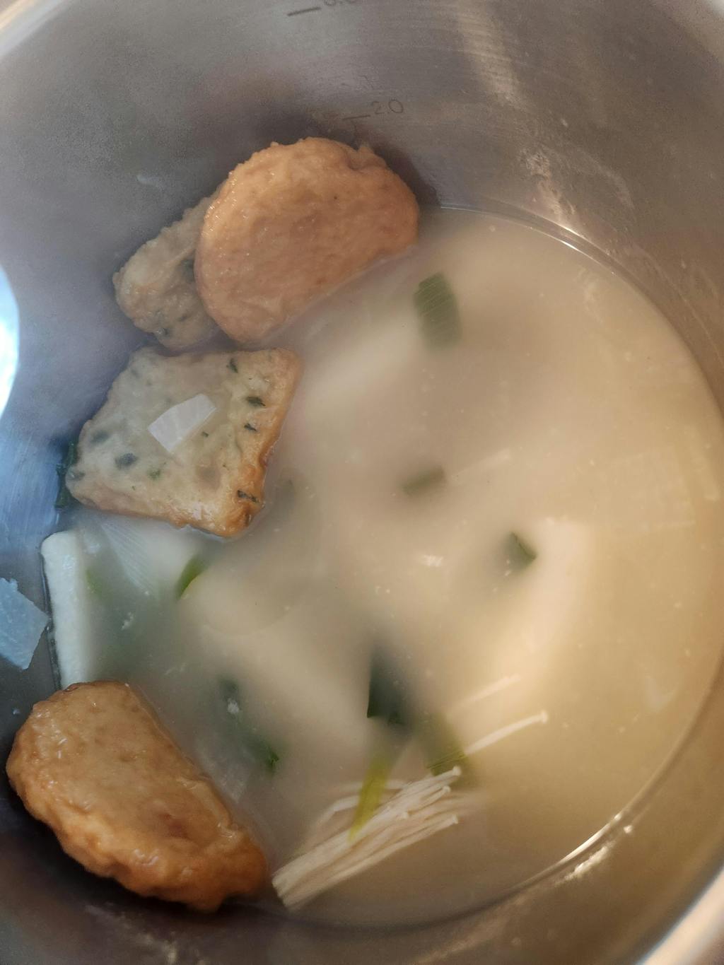② 냄비에 물 750ml(종이컵 5컵)와 모든 재료를 넣고 끓여주세요. 물이 끓기 시작하면 중불로 줄인 뒤 약 10분간 더 끓여주기만 하면, 시원한 부산식 어묵탕이 완성됩니다.