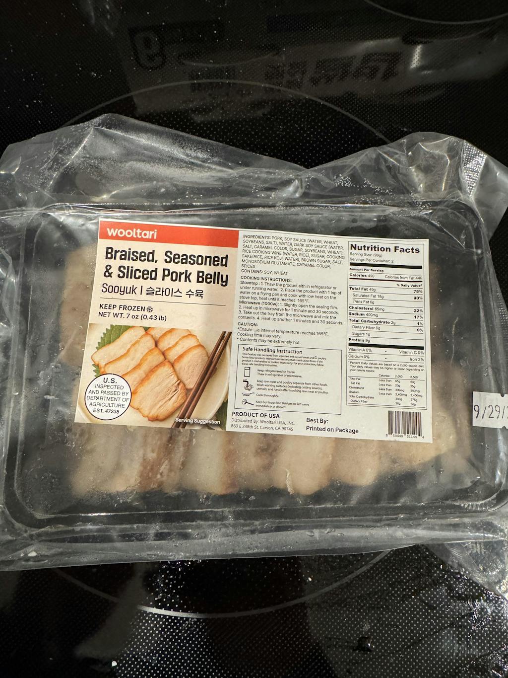 돼지고기, 간장(정제수, 밀, 대두, 소금), 물, 진간장(정제수, 소금, 캐러멜색소, 설탕, 대두, 밀), 청주(정제수, 쌀), 설탕, 요리술(쌀, 누룩, 정제수), 흑설탕, 소금, L-글루탐산나트륨, 캐러멜색소, 향신료