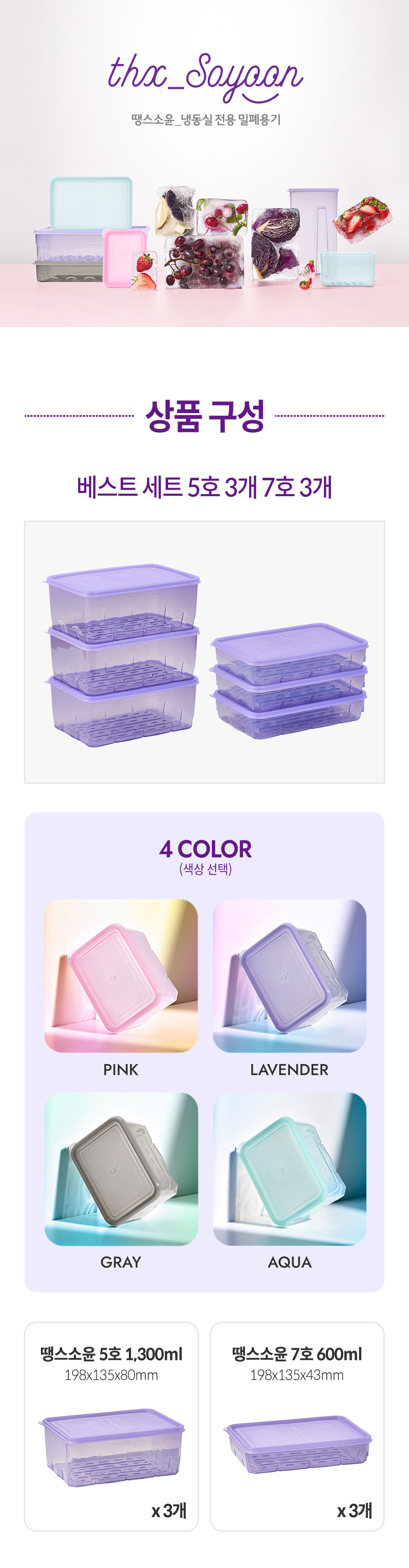 [한국직배송 A] 땡스소윤 냉동용기 베스트세트 6P (핑크/라벤더/그레이/아쿠아)