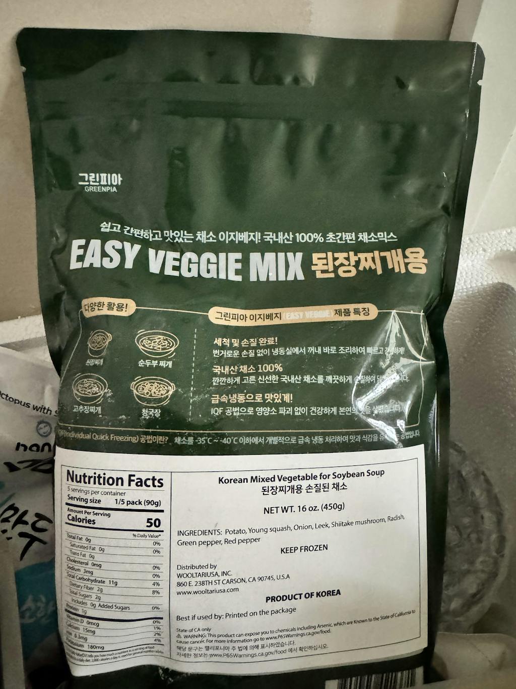 100% Korean Prepped Vegetables for Soybean Paste Stew 450g