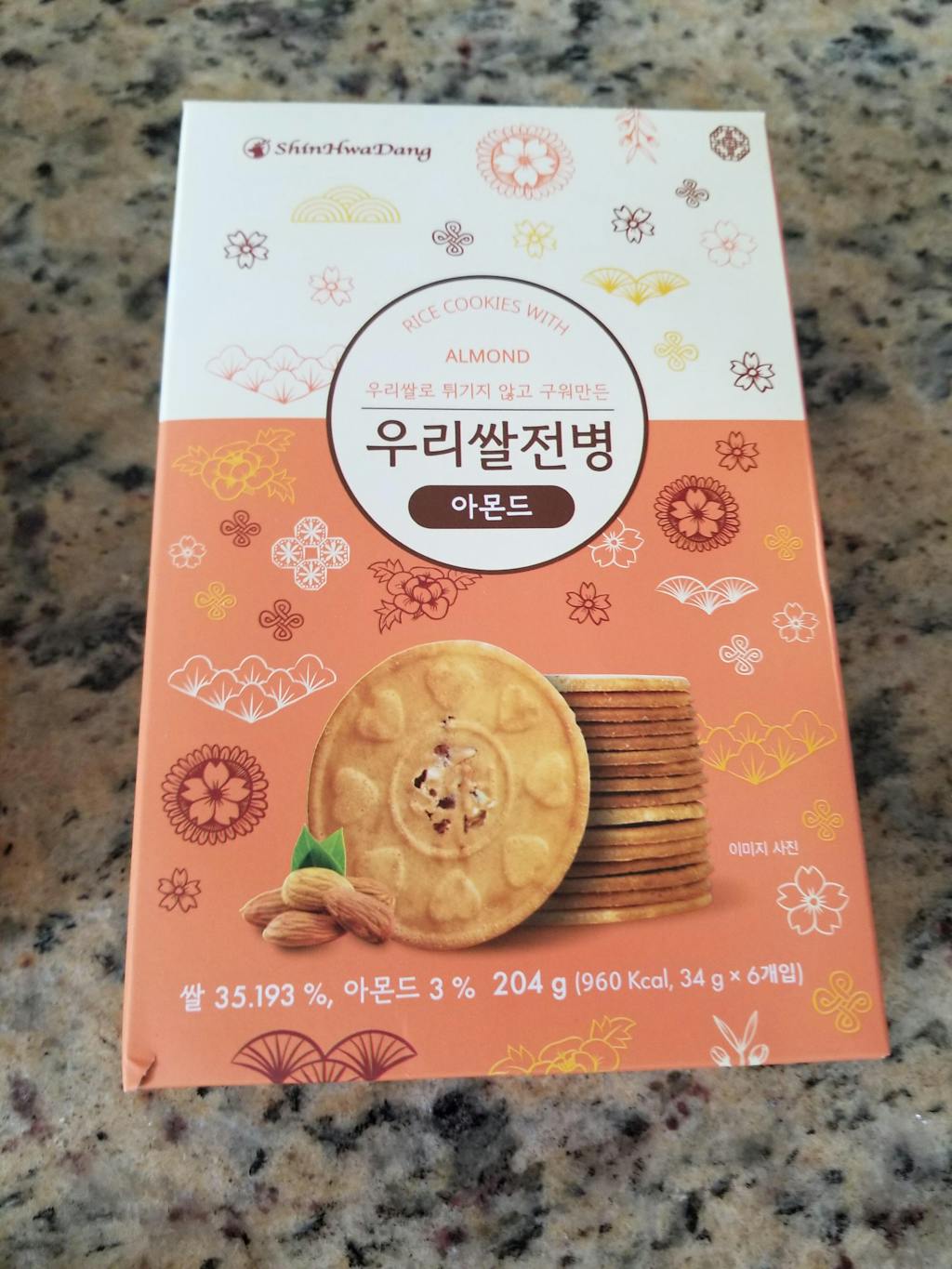 | Ingredients | Rice flour 35.19% (domestic production), sugar, egg (domestic production), shortening (solid product), margarine (soybean), vegetable cream 1 (, milk, soybean), vegetable cream 2 (milk, soybean), almond 3% (US product) ,Synthetic flavoring (milk flavor), salt, ammonium bicarbonate (swelling agent) |