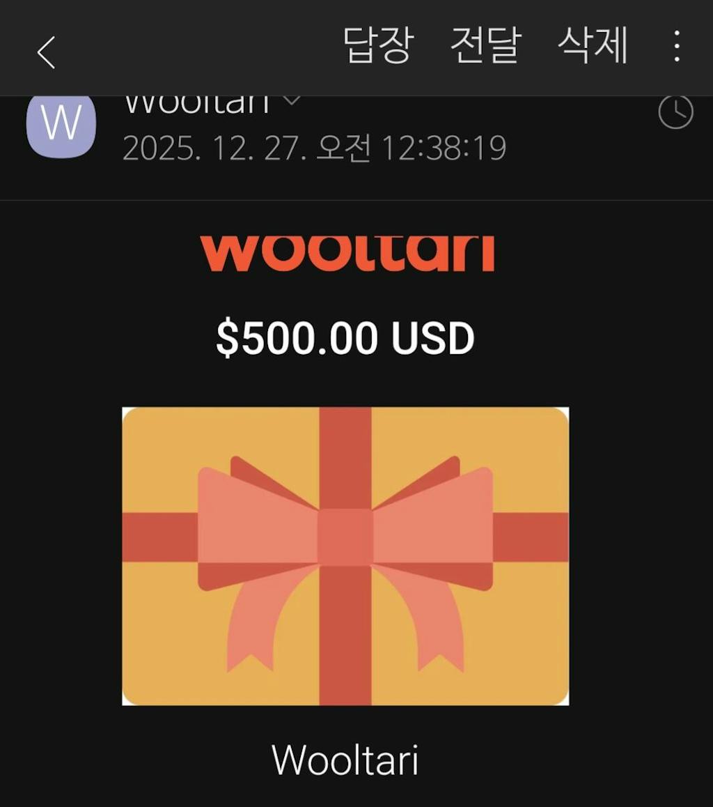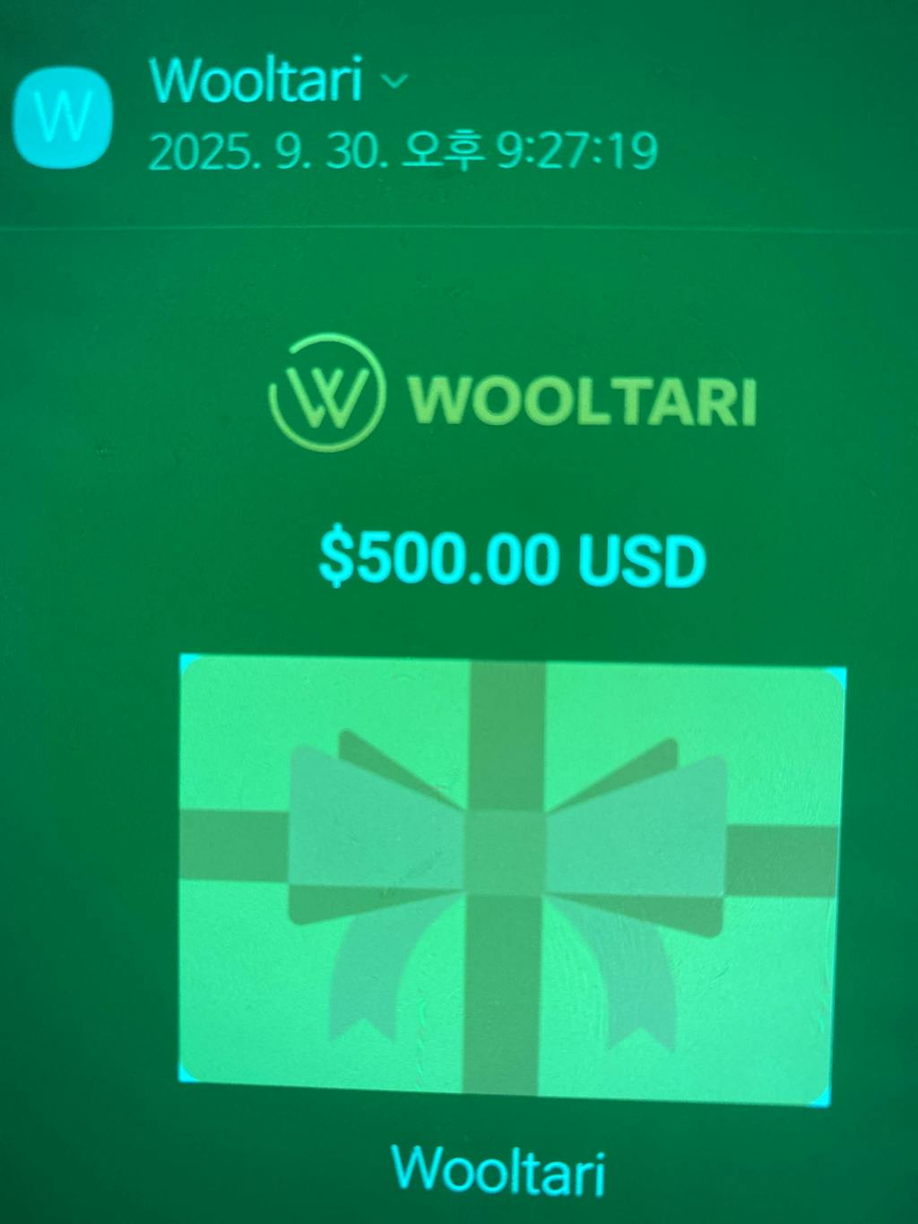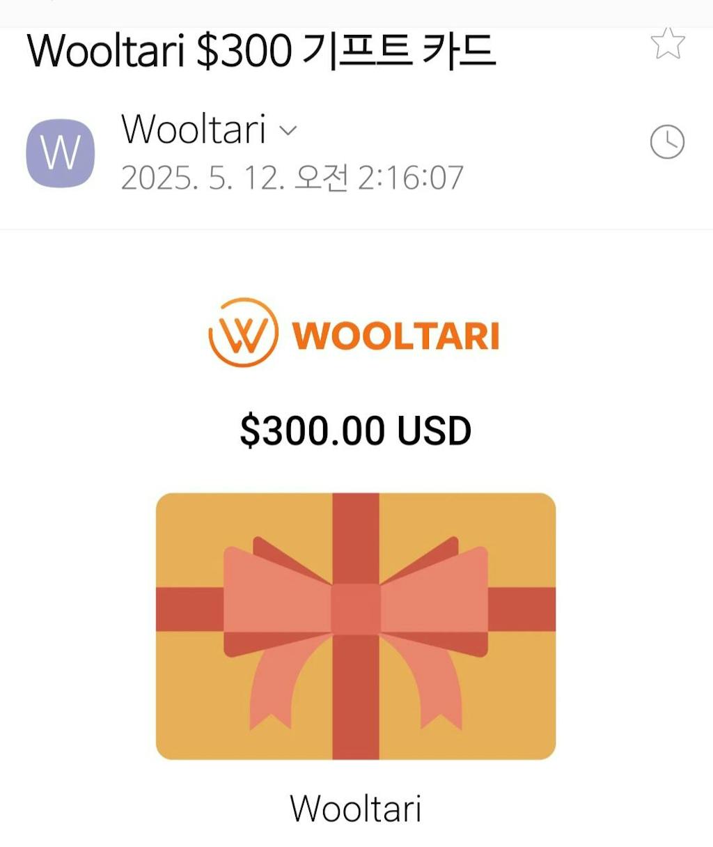 | Notice | 1. Wooltari gift card may be used together with other discount codes, points, and gift cards provided by Wooltari. 2. This is a digital gift card, therefore, a physical gift card will not be provided. Upon purchase, the digital gift card will be instantly emailed to the email address associated with your account. 3. For refunds on any unused gift cards, please contact our customer service (help@wooltariusa.com). 4. Any remaining balance is not refundable. 5. The same gift card code may be used until there is no remaining balance. Recharging the same gift card is not available. 6. Besides the specified discount code, other discount codes may not be used to purchase gift cards. 7. Earning points for purchases made using gift cards is unavailable. |