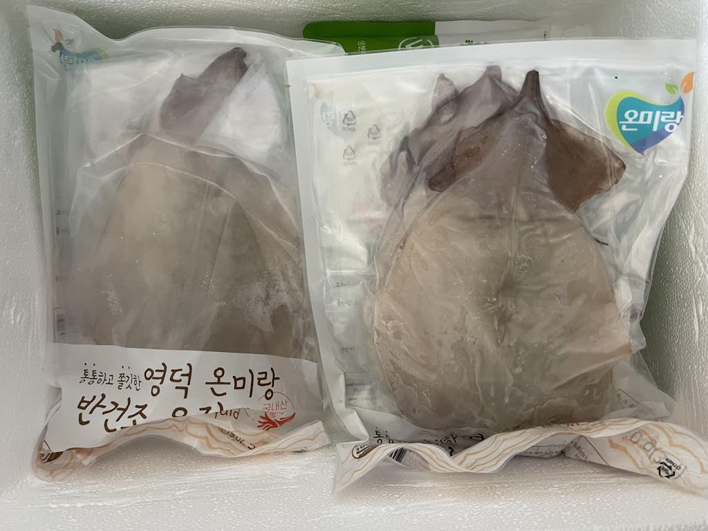 최고!! 너무 맛있었어요. 식감도 좋고 야들야들 ~~ 가격 때문에 고민하다가 마른 오징어를 같이 주문해서 하나만 구매한게 내 실수 네요. 차라리 반건을 3개 주문 했음 좋았을걸 하는 아쉬움... 마른 오징어 140불 그냥 태웠네요. 암튼 강추!!