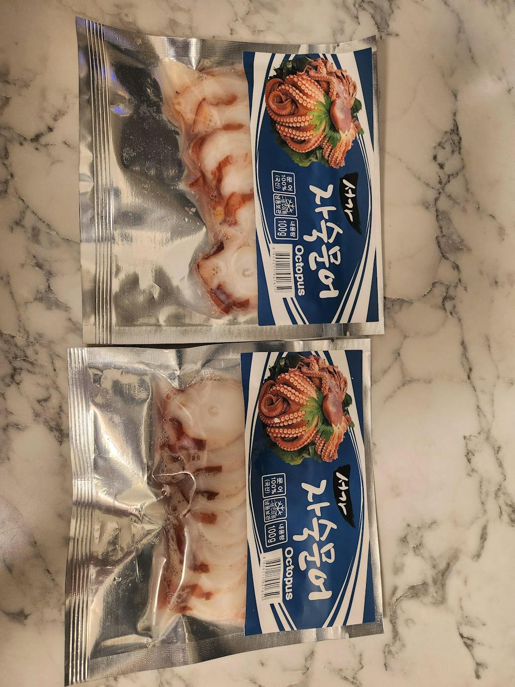 이번에 3pack 이 딜로 나와서 오더 했어요. 역시 맛은 최고네요. 저는 끓는 물에 살짝만 데쳐서 초고추장찍어서 먹어요 그런데 저 아시는 분은 이 값비싼 이문어를 샐러드에 뿌려서 고급스럽게 드시더라구요 예쁘게 데코를 하니까 그럴듯한 거 있죠.??